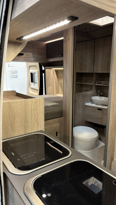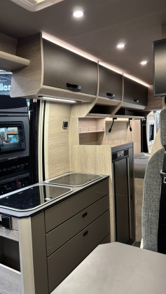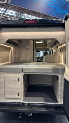 Er verfügt über ein festes Heckbett mit großem Stauraum, eine voll ausgestattete Küche, moderne Heiztechnik und ein optionales Autarkie-Paket und ist damit ideal für Reisen ohne Kompromisse.