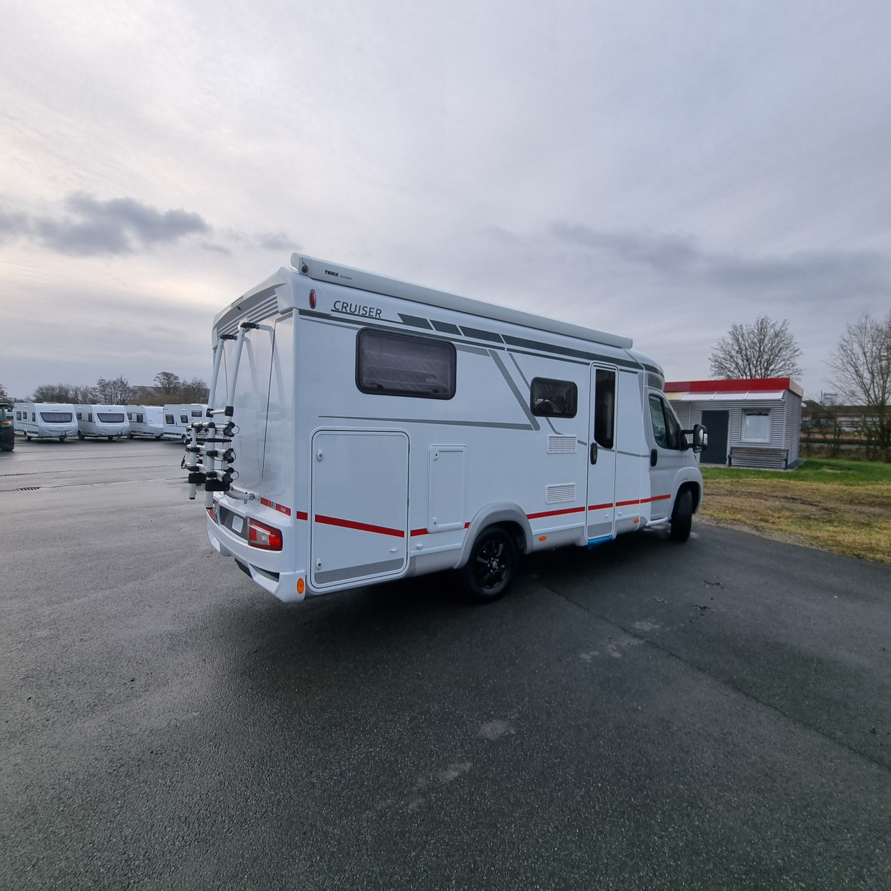 Unser Wohnmobil vom Typ LMC Cruiser V646 G ist auf Basis des Fiat Ducato 8, verfügt über ein 6 Gang Schaltgetriebe und ist mit 6.88m Länge und einer Breite von 2.23m in der beliebten Van Klasse unterwegs.
